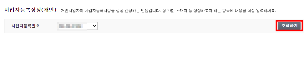 홈택스에 로그인후 [신청/제출] 클릭- [사업자등록 정정(개인)] 클릭하세요
