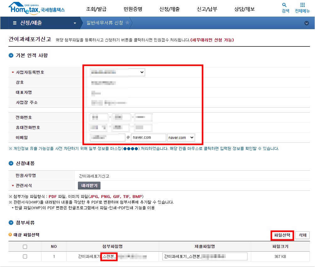이렇게 작성한 서류는 반드시 출력해서 스캔본으로 신청해야 합니다!